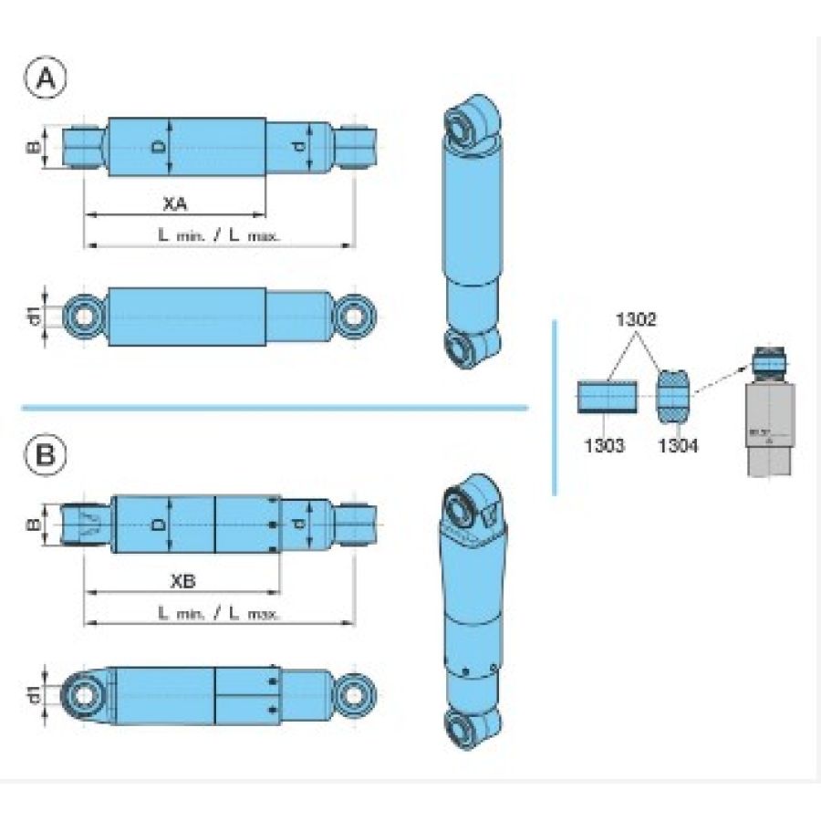 Амортизатор подвески 292/432 24X55 312978 применяется на полуприцепах, прицепах с подвеской BPW.